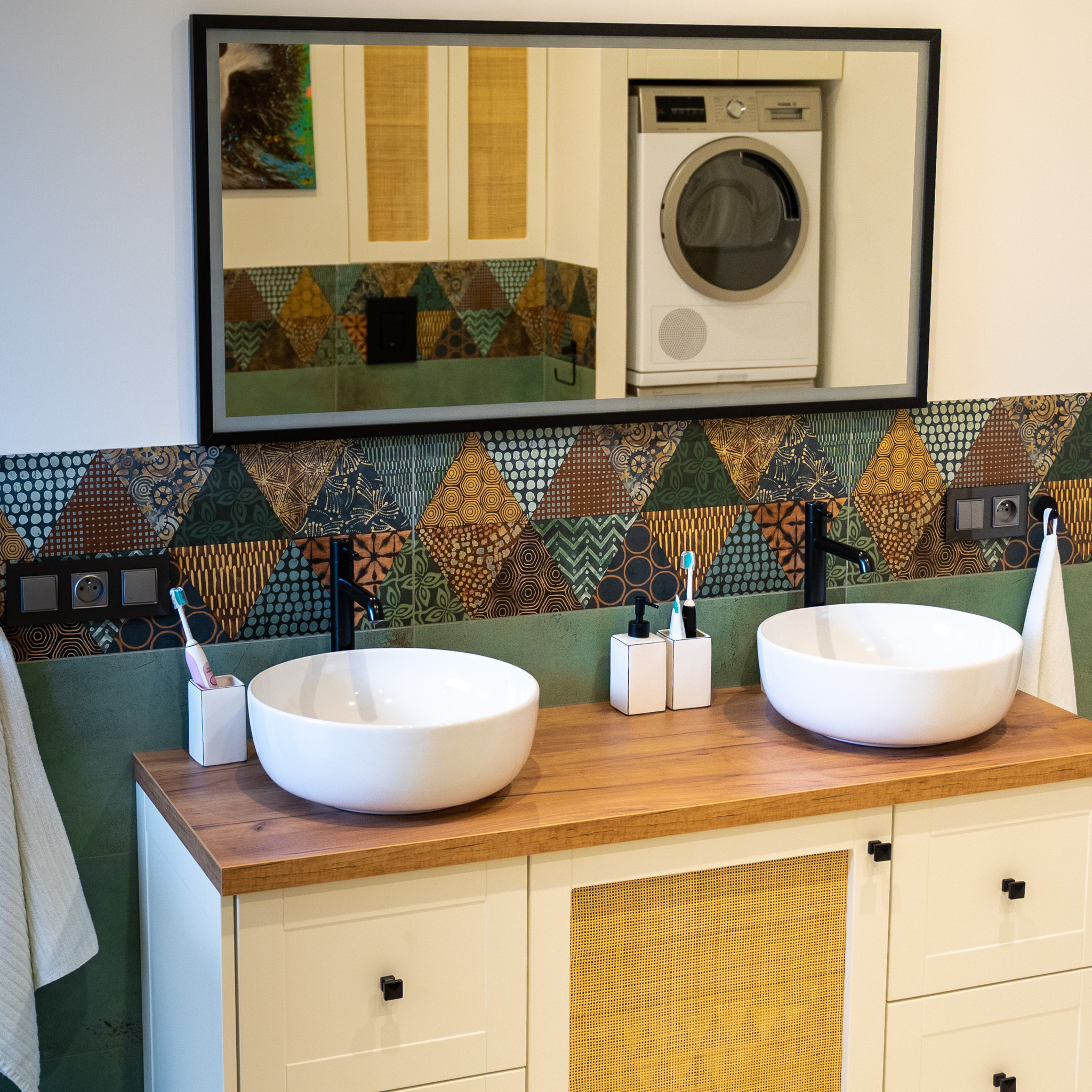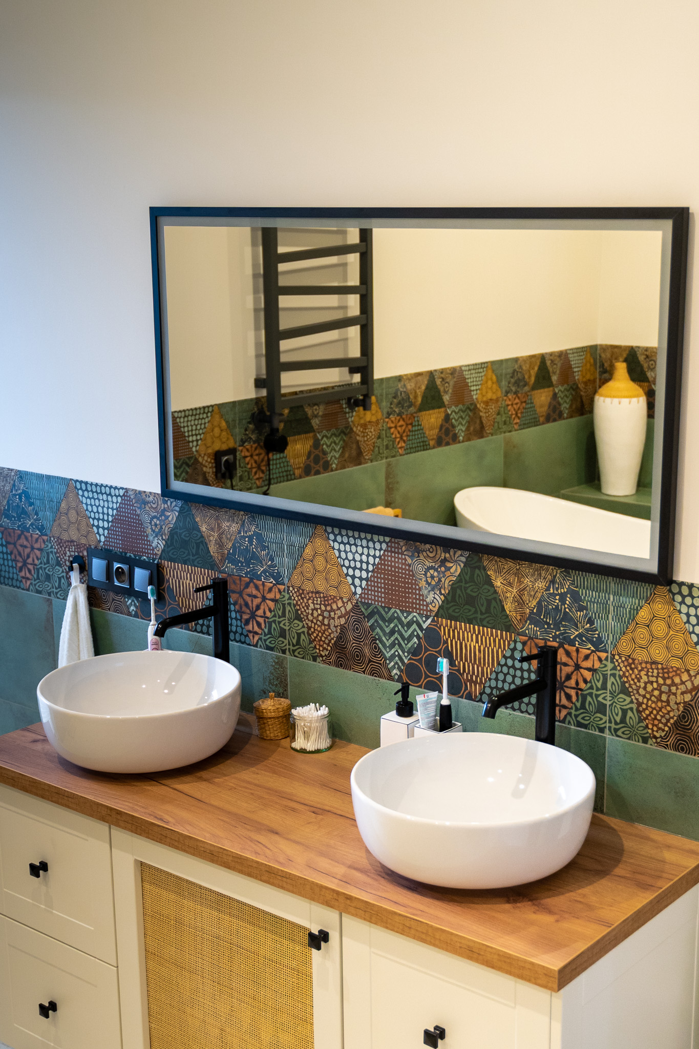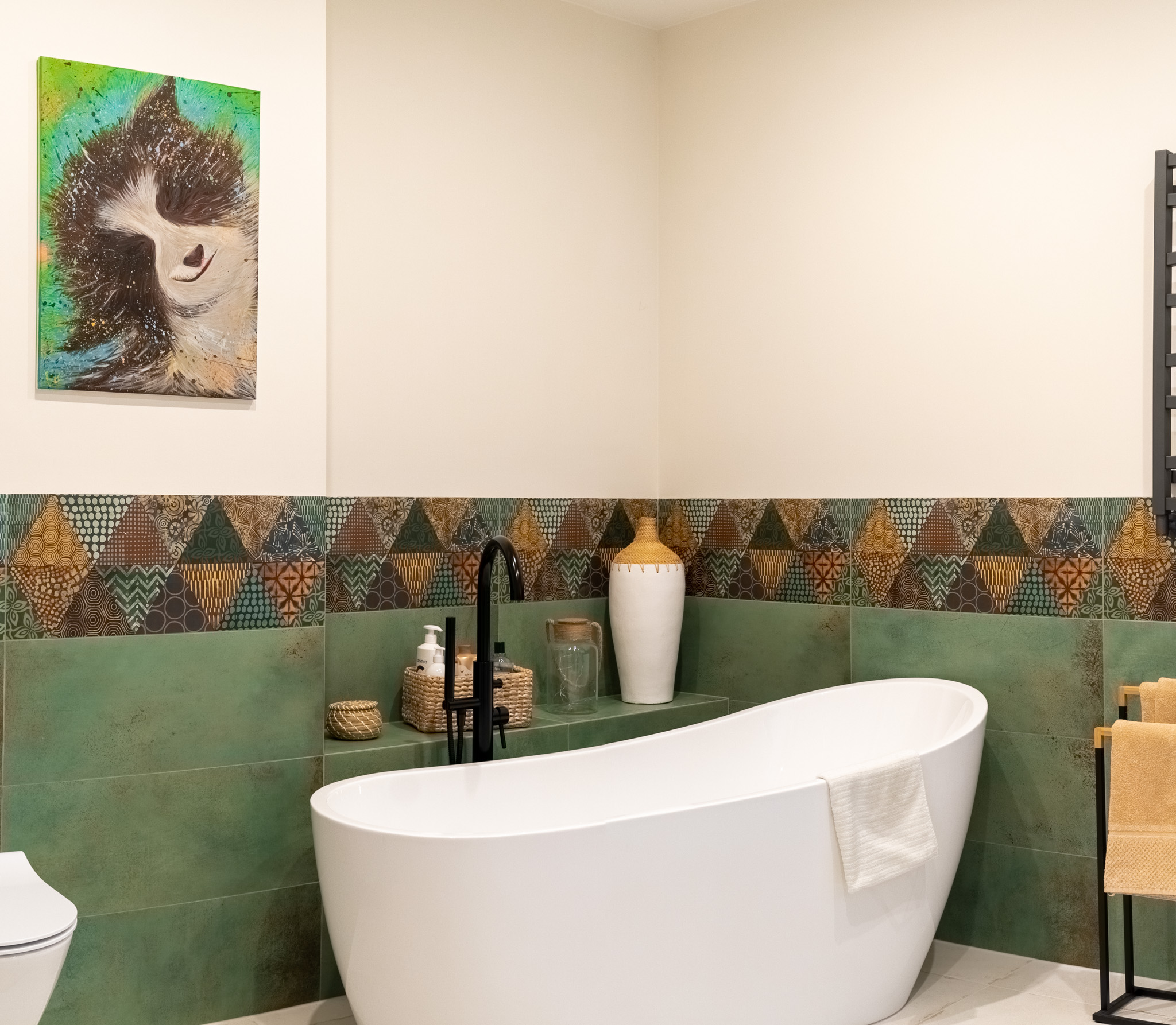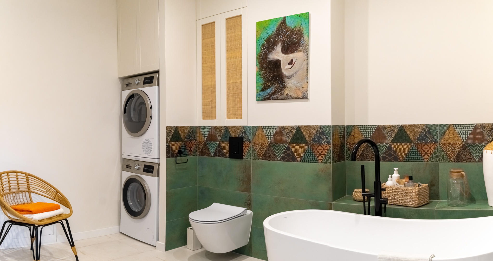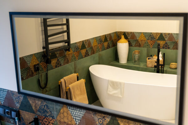 Ściany zdobią stylowe półki z roślinami i nowoczesne dekoracje, które dodają charakteru i osobistego stylu. Miękka sofa oraz wygodne fotele zachęcają do odpoczynku, a dobrze dobrane dodatki, takie jak zasłony i dywany, dopełniają całości, tworząc przestrzeń, która jest zarówno funkcjonalna, jak i estetyczna. Zapraszam do odkrycia więcej ujęć z tego wyjątkowego domu w Krzyżowicach, który łączy w sobie nowoczesny design i ciepło domowego ogniska.