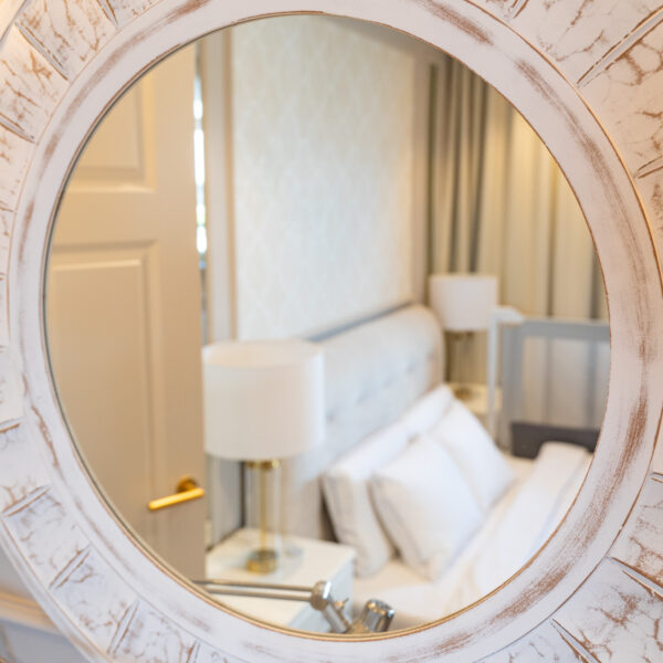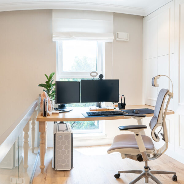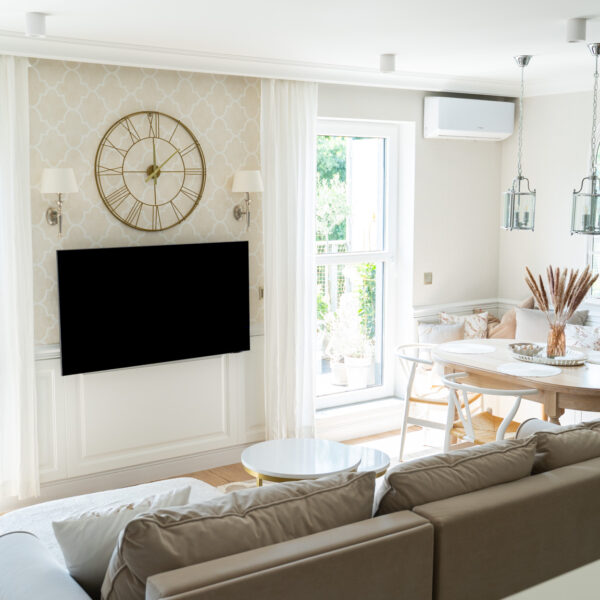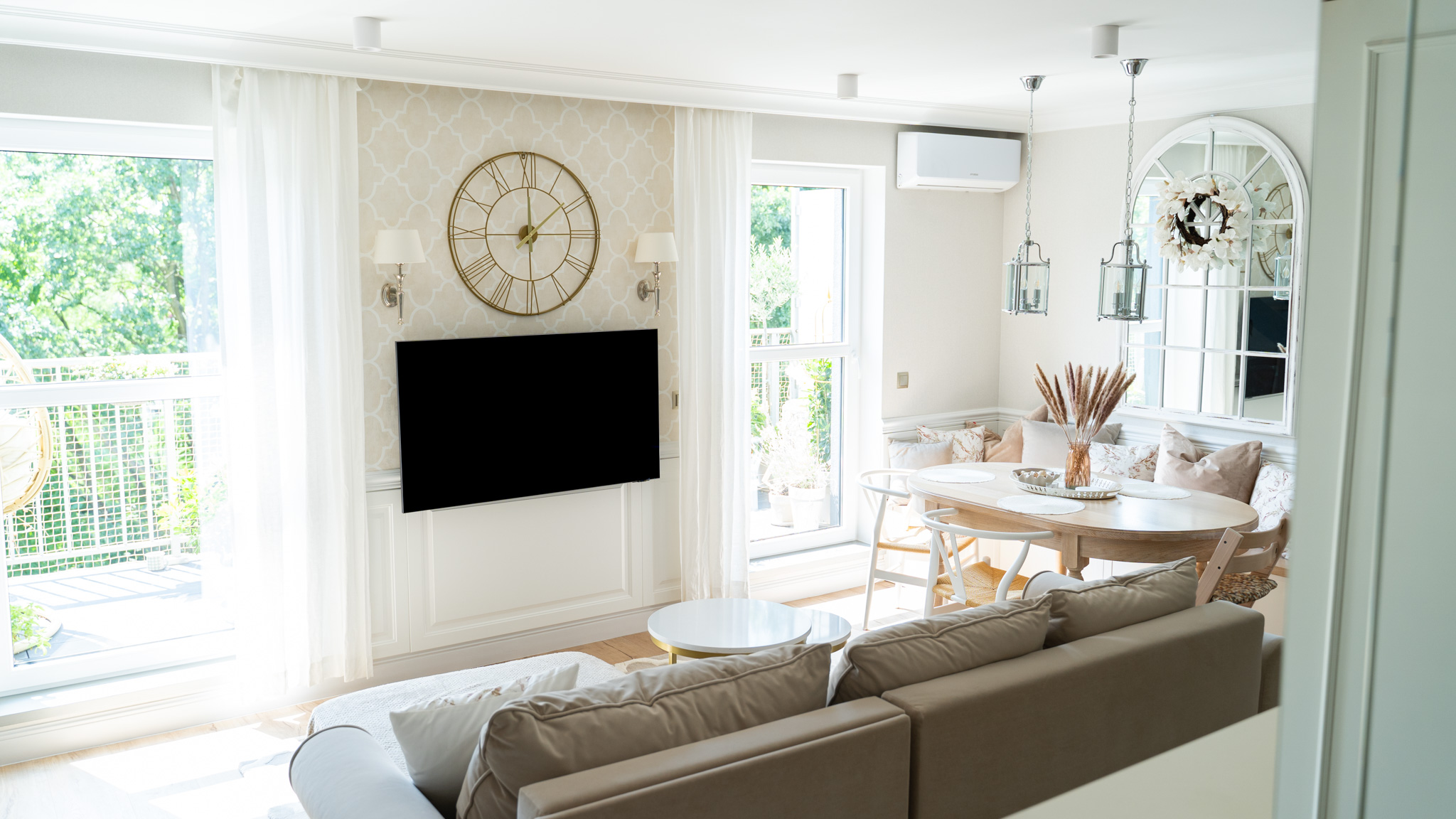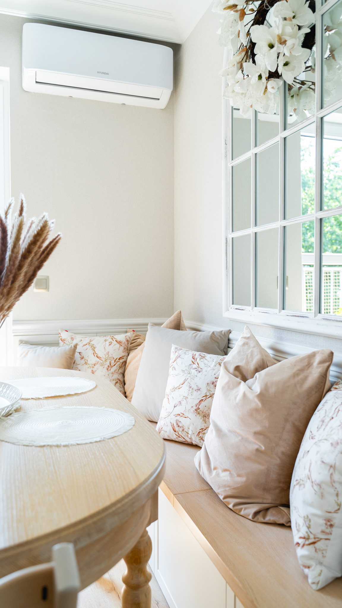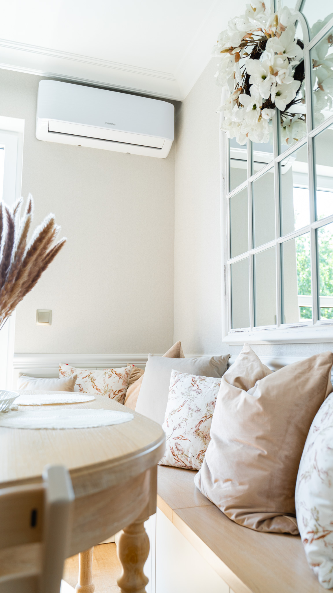 Delikatne oświetlenie wiszące oraz dekoracyjne lustro nad stołem dodają przestrzeni głębi i elegancji. Kuchnia o neutralnych barwach wyposażona jest w nowoczesne urządzenia, a szafki oferują mnóstwo miejsca do przechowywania, co podkreśla funkcjonalny aspekt tego wnętrza. Całość dopełniają subtelne detale, takie jak stylowe poduszki, wzorzysty dywan oraz zharmonizowane kolory, tworząc wyjątkową atmosferę. Zapraszam do obejrzenia całej galerii zdjęć, aby poczuć unikalny klimat tego eleganckiego mieszkania na Wojszycach.